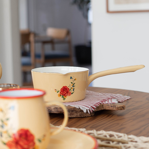 Combo de productos con 20% de descuento: 4 coladores rojos + 4 hervidores con mango, diseño rosa, colección Raíces.