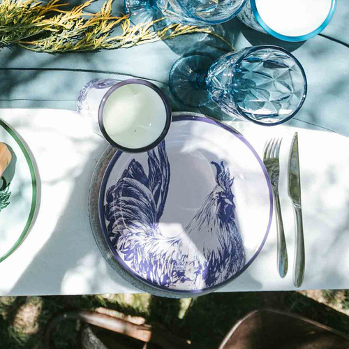 Vaso cilíndrico enlozado. Base lila, estampa en lateral y borde violeta.